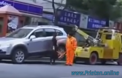 Această femeie vede că mașina ei va fi tractată. (Video)